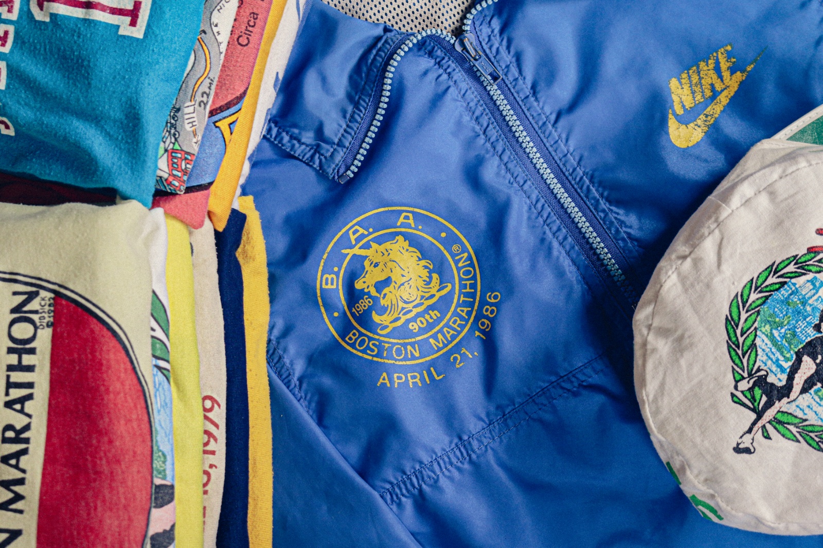40+ original vintage apparel pieces from the Boston Marathon, from t-shirts and crewnecks to tracksuits and hats