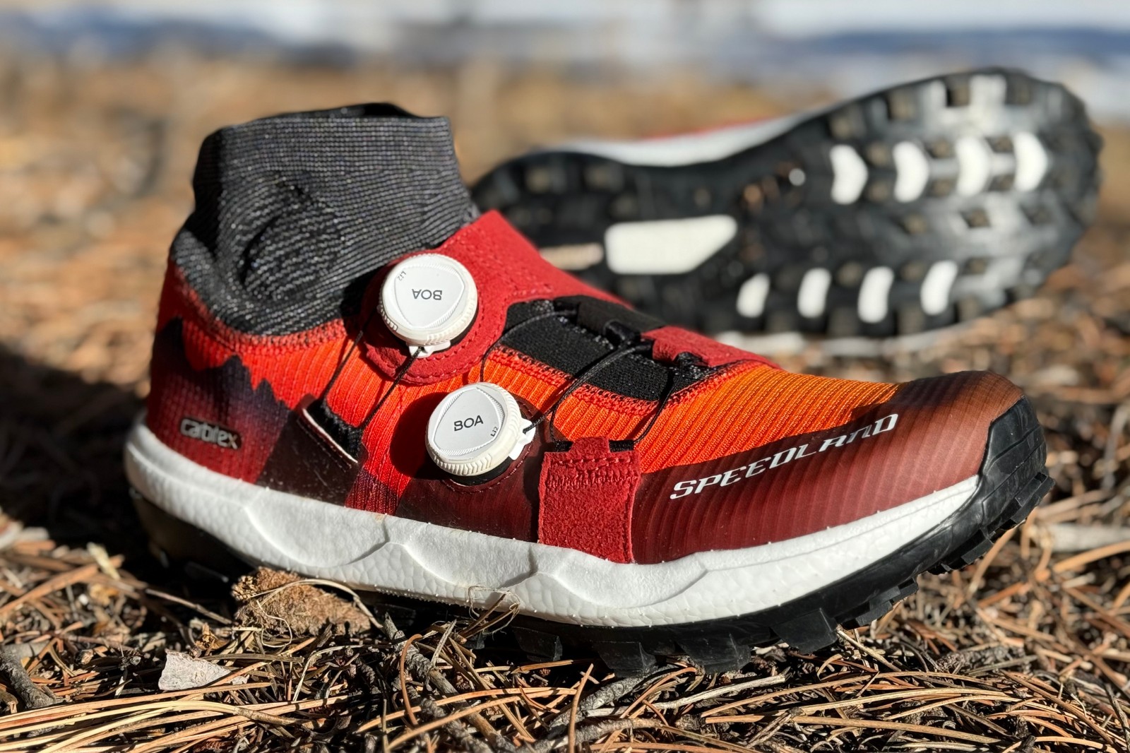 Oh, and you can easily modify that fit from the topside to enhance both the sensation of the trails and adapt to your terrain. I love that Speedland is stickin’ with the dual BOA Fit System dials, as I think it’s a second-to-none closure that allows for top-notch fit. Oftentimes, I’ll loosen the dials for runs that are relaxed or on the uphills, but with a few quick turns that take only seconds, I can change the fit to lock it in for more technical features. Also, this allows me a particular fit for running the gravel roads to the trailhead, at which point I can tighten my shoe for the snowy trails without removing my mittens.