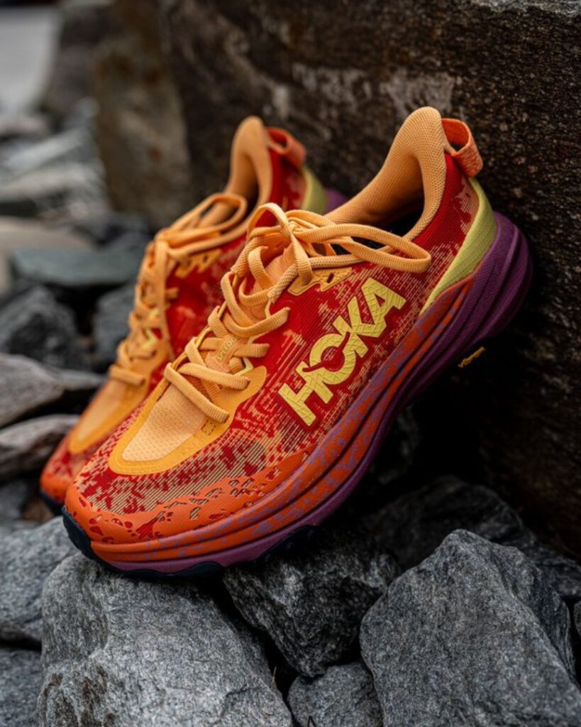 TAYLOR: Nearly a decade has gone by since the first iteration of the beloved Hoka Speedgoat was released. Even though Hoka’s Mafate was the original high-stack trail shoe, it was the Speedgoat that took trail running to the next level. Think of it as the Gravedigger of the trail running world… the more I think about it, there may be enough similarities between the two to constitute a black, green, and headstone colorway.