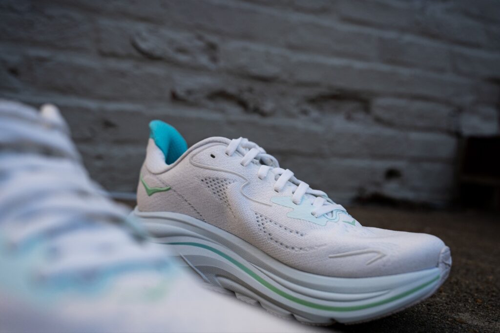 MEAGHAN: I couldn’t have picked a more gorgeous colorway for the Clifton 10. The all-white upper with Tiffany Blue accents might just be my favorite design of all time. When I slip it on, I’m immediately greeted by that signature plush Clifton feel. The padding around the collar and heel is incredibly soft, and the upper materials are smooth.